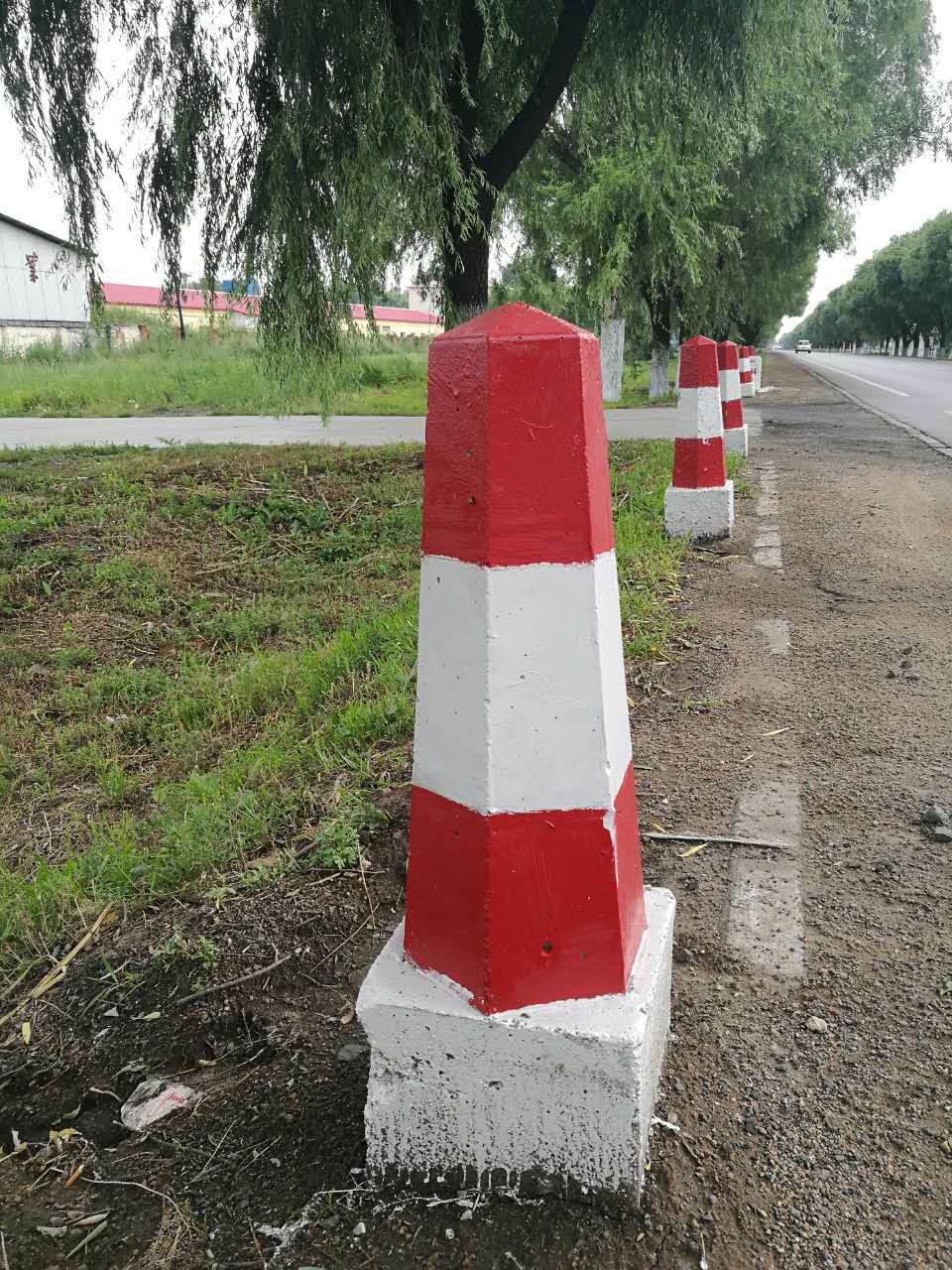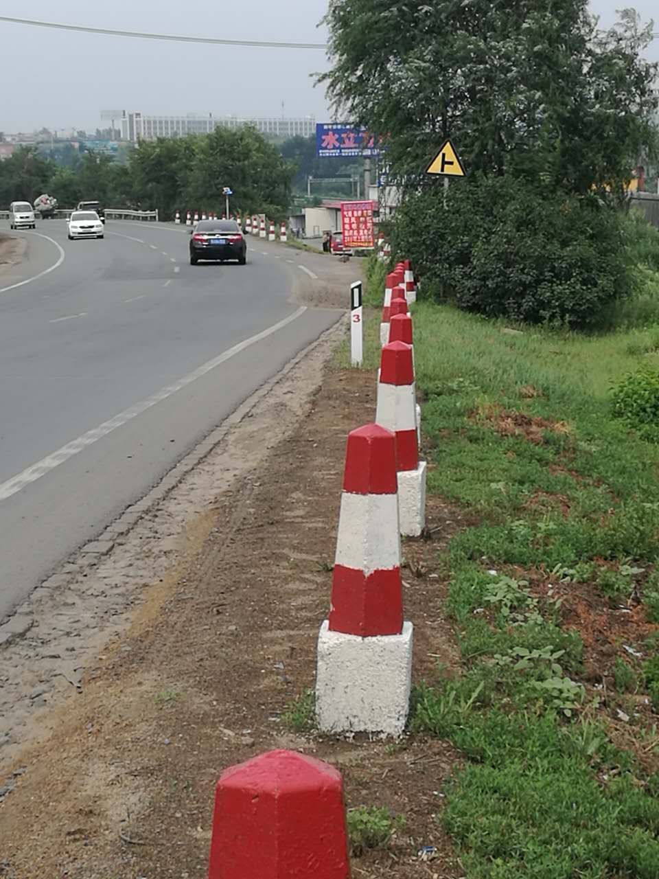 道路兩側(cè)安裝了警示柱,提高安全系數(shù)